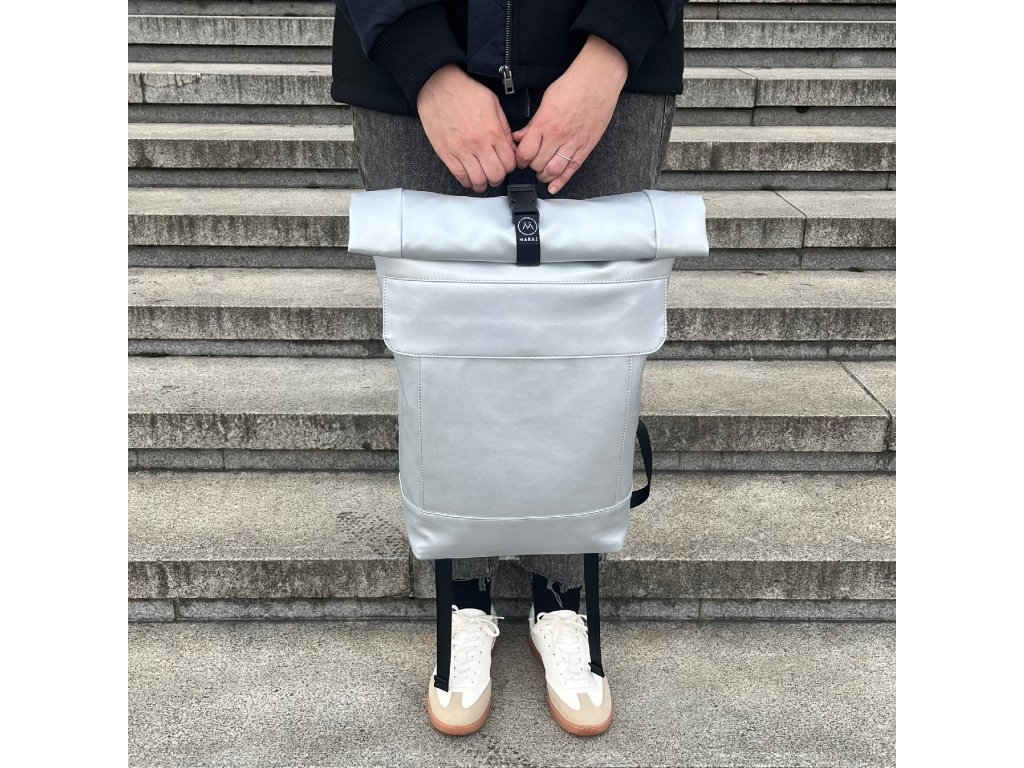 MATERIAL: WATERPROOF SILVER ECO LEATHER (synthetic)