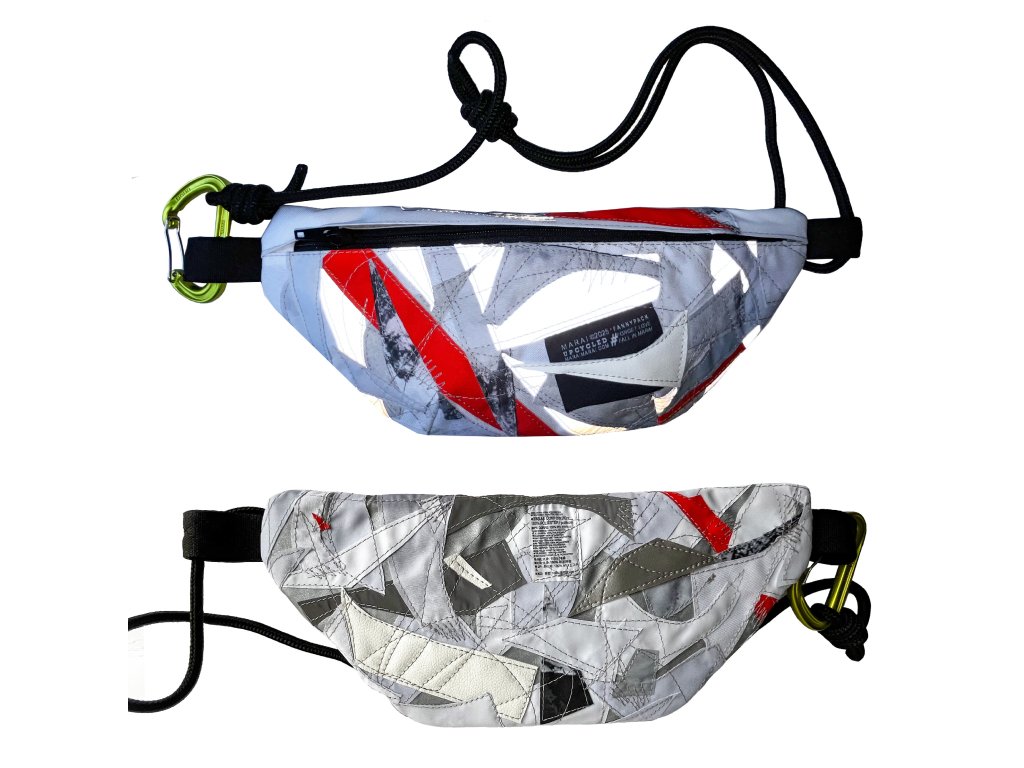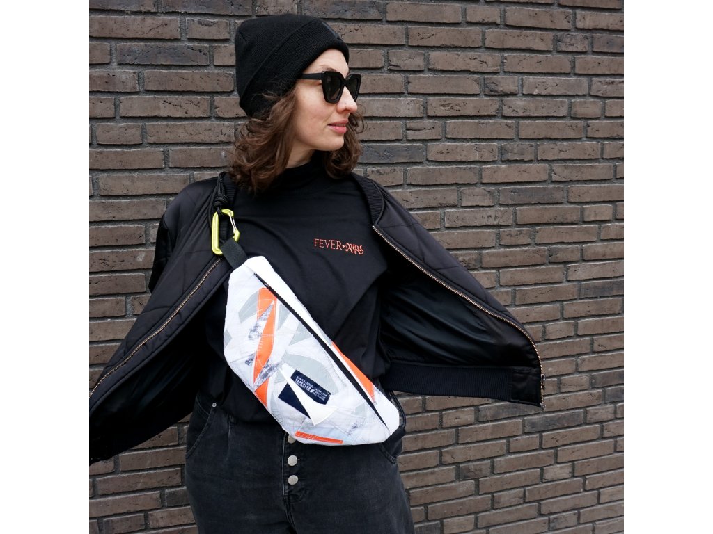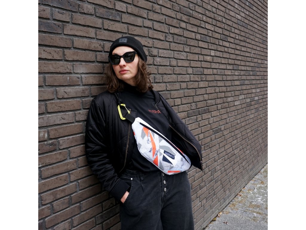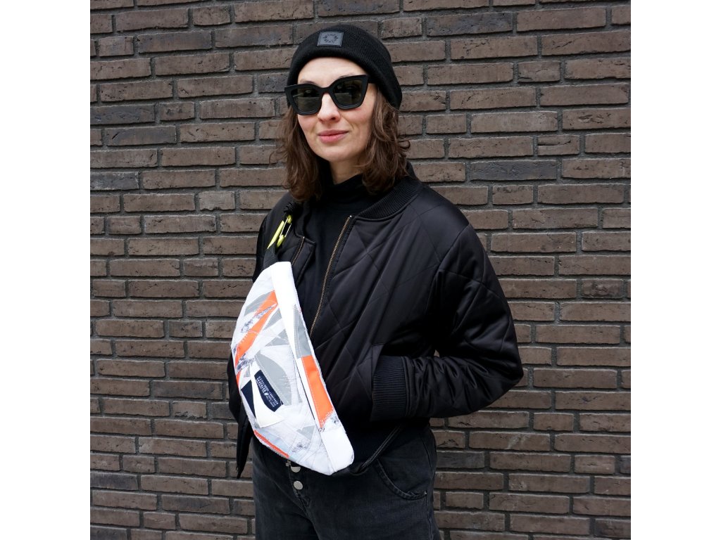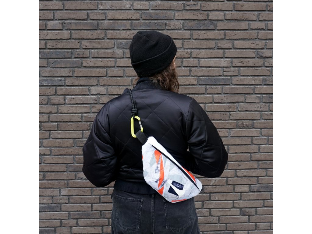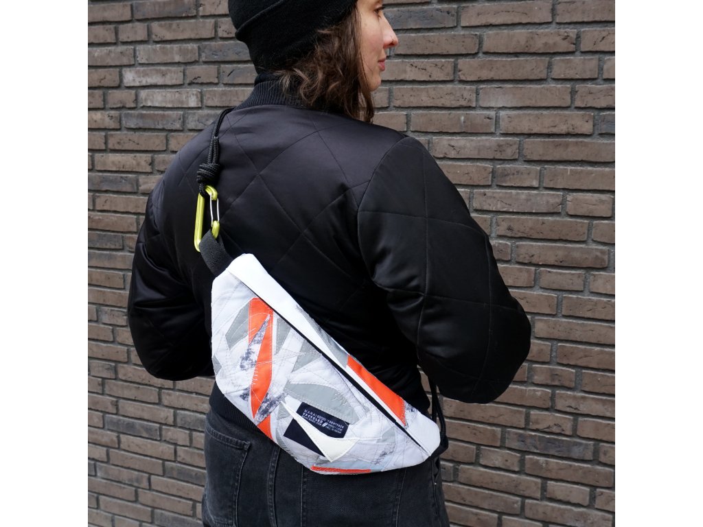 Voděodolná crossbody ušitá z malých odstřižků a zbytků všeho druhu, které mi vznikají při budování batohů.